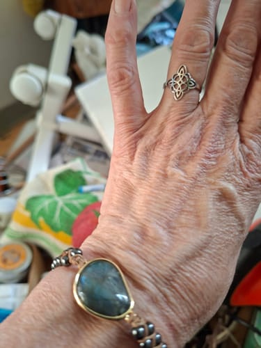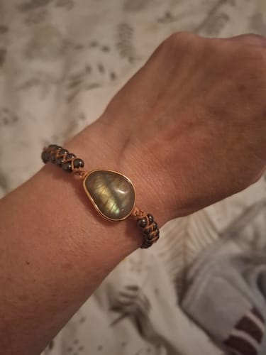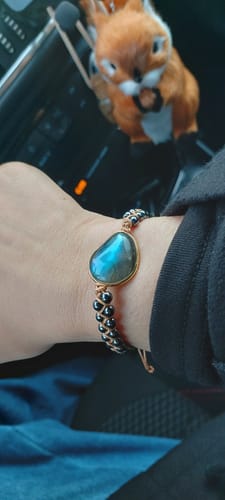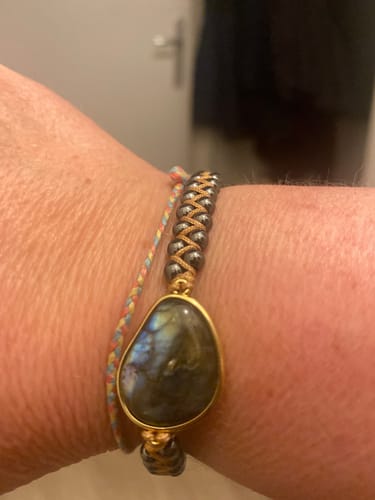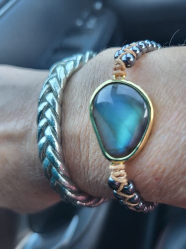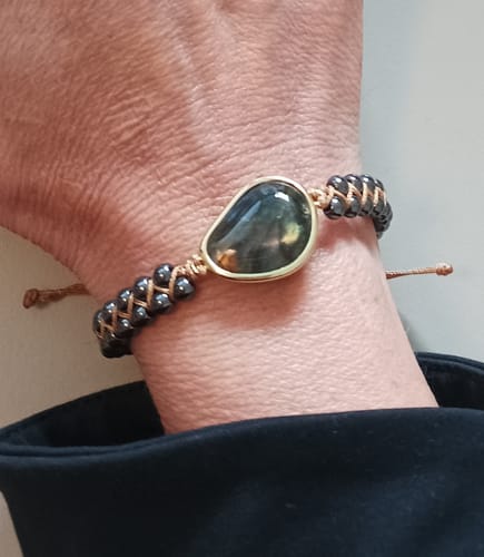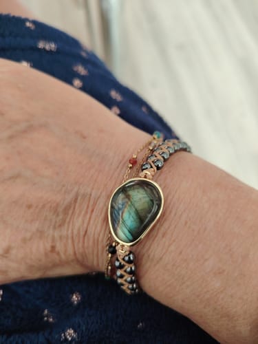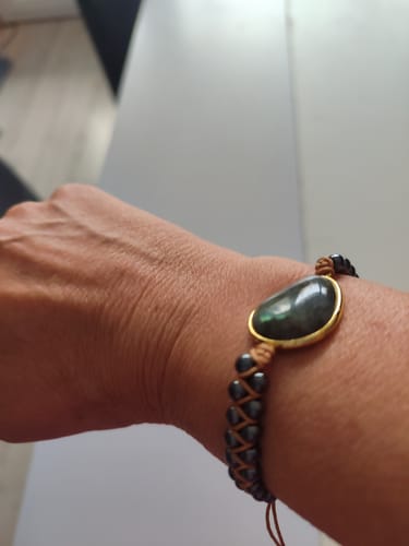 Les bracelets sont fabriqués dans nos ateliers avec des pierres énergétiques puissantes : labradorite et hématite connues pour leurs effets d'ancrage de l'aura, d'éloignement des énergies négatives et de l'harmonisation du corps et de l'esprit.